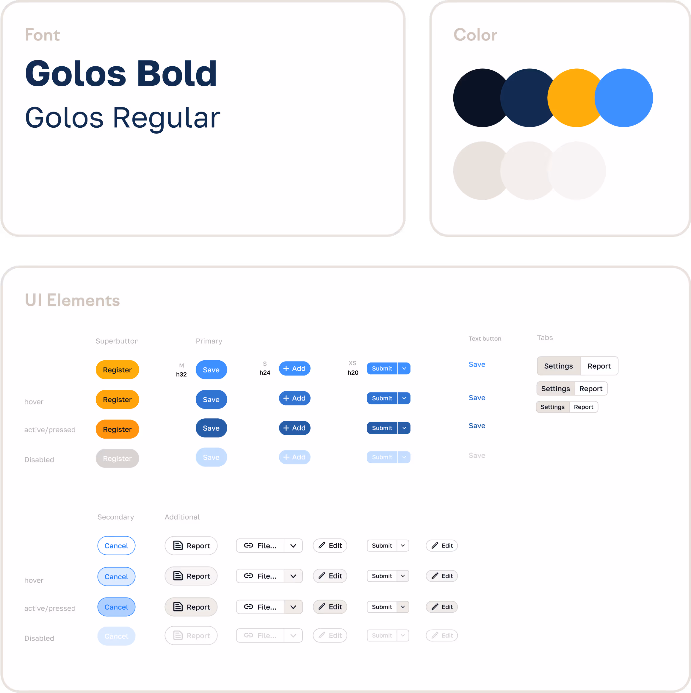 We selected Golos Text in three weights — Regular, Medium, and Bold — because it adapts well to different situations. It remains crisp and functional in UI, but adds presence in presentations. The typeface scales smoothly, keeping the same voice across all formats.